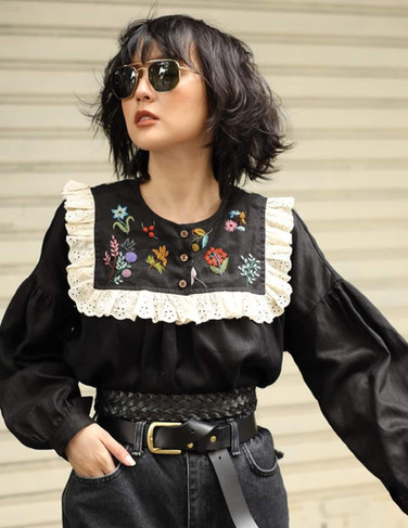 La blouse Mariposa est pleine de volumes: ceux du col plissé, des manches bouffantes, du buste froncé et des volants ! Tout un programme de tissu à faire gonfler :) Selon les tissus choisis, le style de cette blouse pourra donc varier du tout.